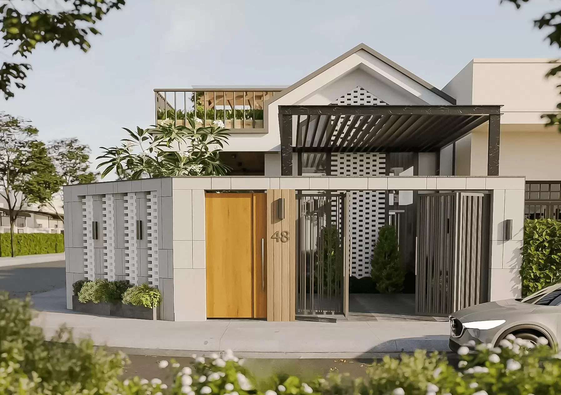 Thiết kế này đặc biệt phù hợp cho khu vực đô thị hóa nhanh như Bình Dương hay Đồng Nai, nơi đất mặt tiền nhỏ nhưng nhu cầu sống hiện đại cao. Với sân vườn rộng, bạn có thể tạo khu BBQ ngoài trời, tăng giá trị giải trí cho gia đình.
