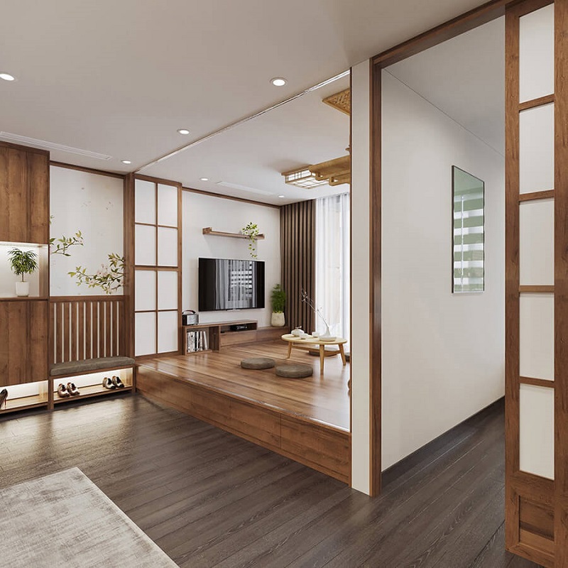 Thiết kế căn hộ Nhật Bản đặc biệt phù hợp với những không gian có diện tích hạn chế. Nội thất được bố trí gọn gàng, ưu tiên các món đồ có kích thước vừa phải và công năng rõ ràng. Việc sử dụng nội thất đa năng giúp mở rộng không gian sinh hoạt mà không gây cảm giác chật chội. Các chi tiết như cửa lùa Shoji hay tủ kệ âm tường giúp tiết kiệm diện tích hiệu quả.