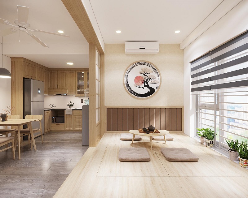 Để làm được điều này, gia chủ nên lựa chọn các món đồ nội thất thông minh, tích hợp nhiều công năng. Những thiết kế đa năng giúp tăng không gian lưu trữ mà không làm căn hộ trở nên chật chội. Nhờ đó, không gian sống vẫn gọn gàng, khoa học và đúng tinh thần Nhật Bản.