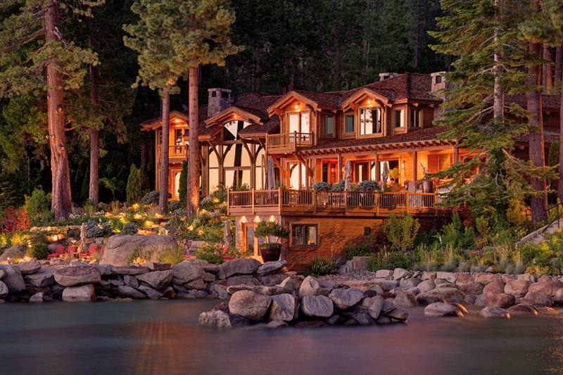 Khu dinh thự gồm nhiều khối nhà nằm quanh hồ nước nhân tạo, được thiết kế hài hòa với cảnh quan xung quanh, mang dáng dấp của một khu nghỉ dưỡng sang trọng. Bên trong, sofa nhung và lò sưởi tạo nên không gian ấm cúng, vừa tinh tế vừa thể hiện phong cách sống tao nhã của giới siêu giàu Mỹ.