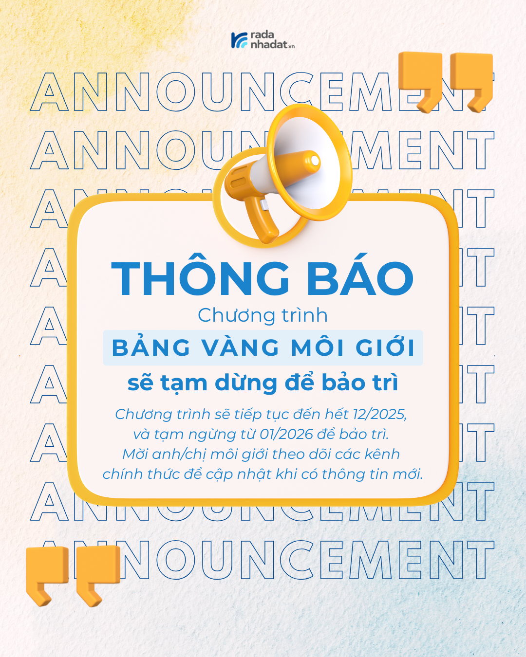 Bảng Vàng Môi Giới sẽ tiếp tục hoạt động bình thường đến hết tháng 12/2025. Trong thời gian này, anh/chị vẫn có thể tham gia các hoạt động tích điểm, xếp hạng và theo dõi bảng xếp hạng như trước đây.