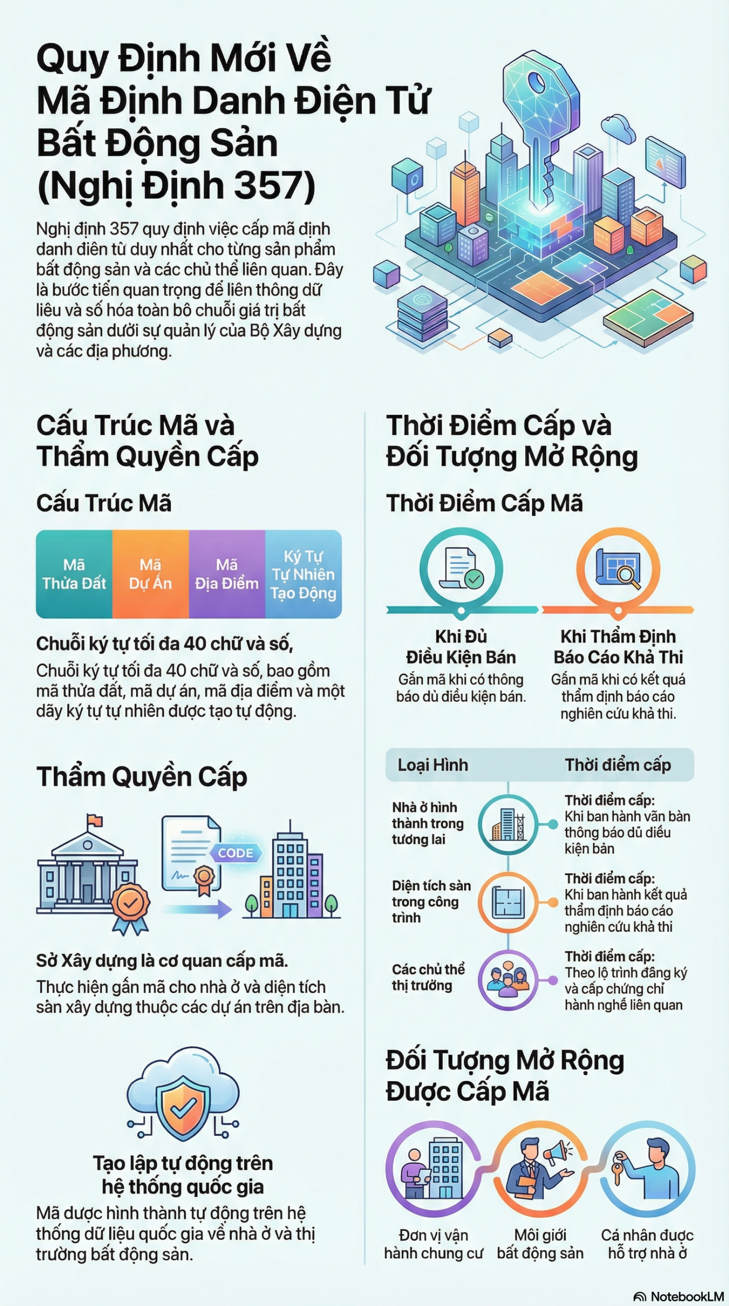 Một điểm đáng chú ý là Nghị định 357 không dừng lại ở việc cấp mã định danh điện tử cho sản phẩm bất động sản, mà còn mở rộng sang các chủ thể tham gia thị trường, bao gồm: