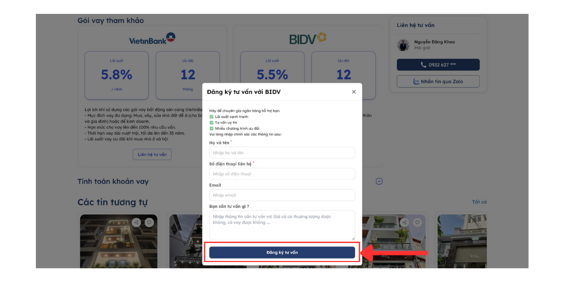 Hướng dẫn đăng ký tư vấn vay mua, sửa nhà trên Radanhadat.vn