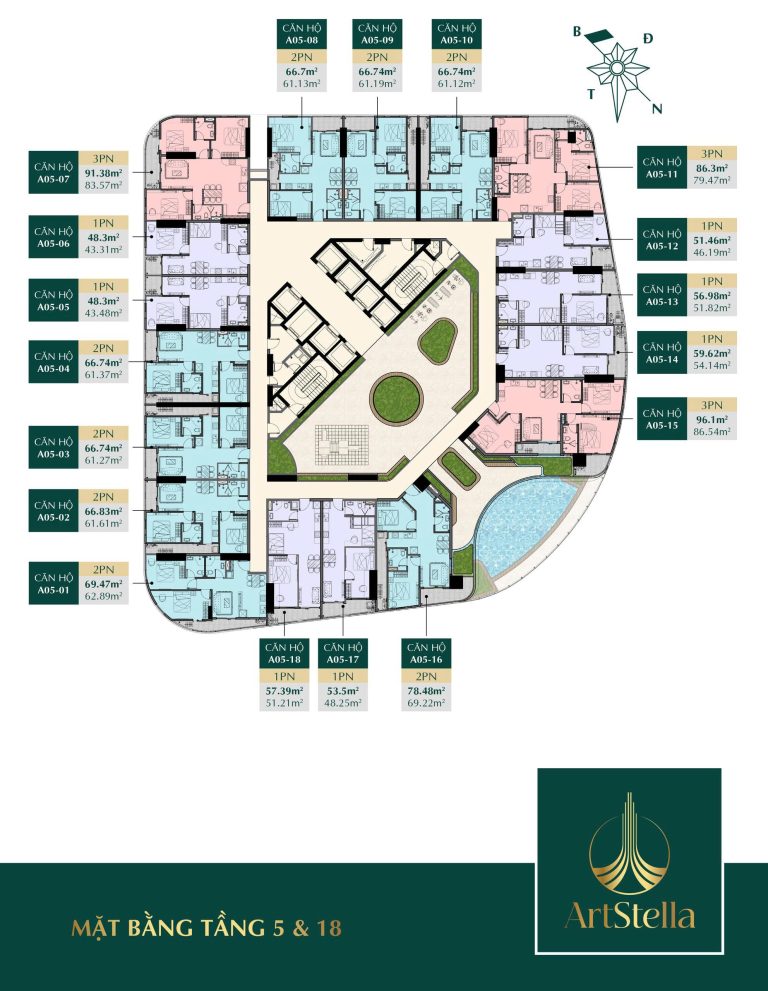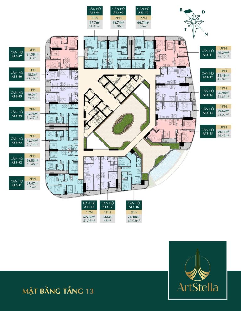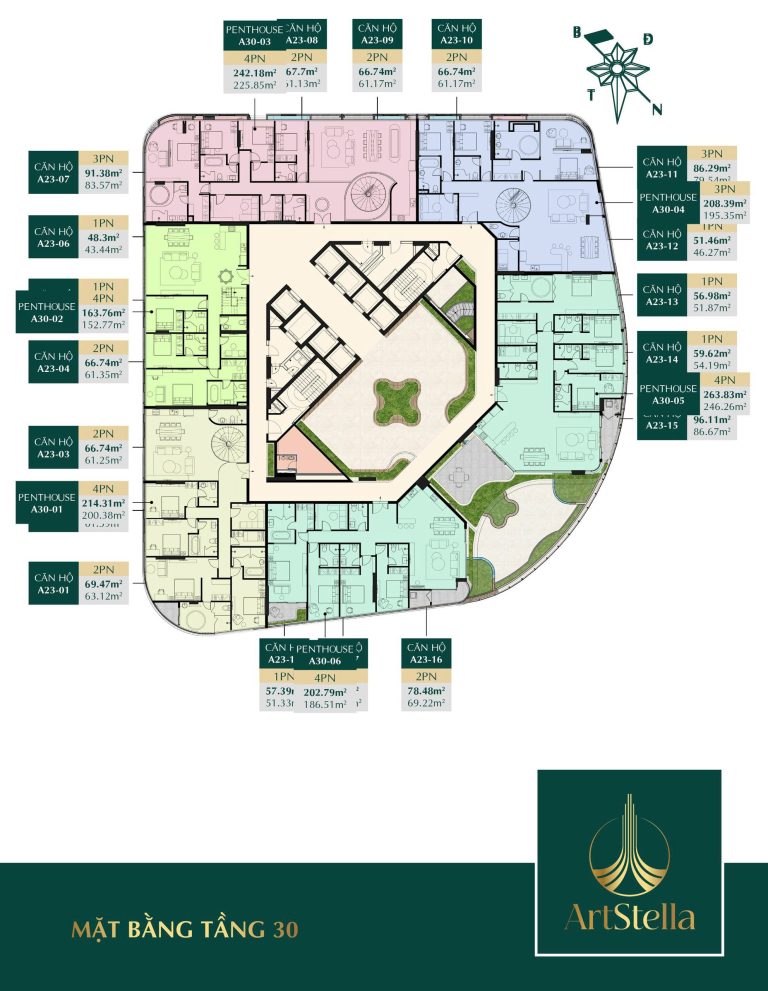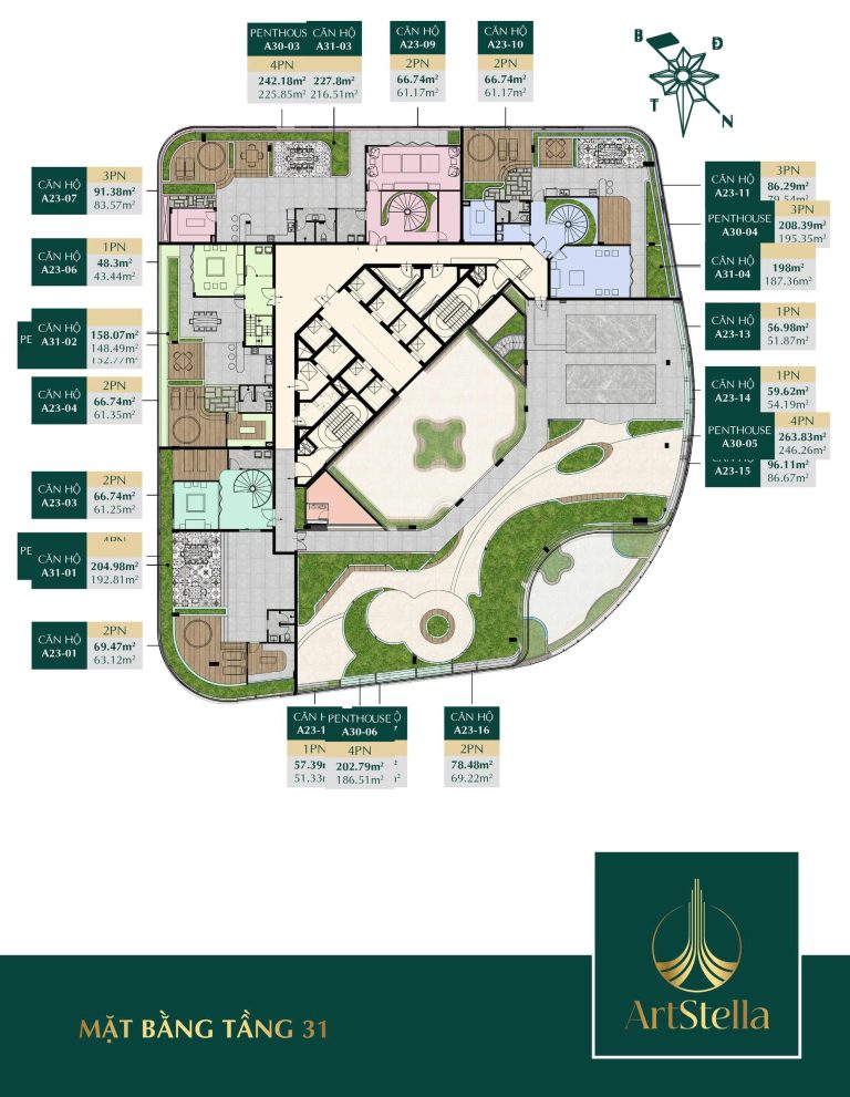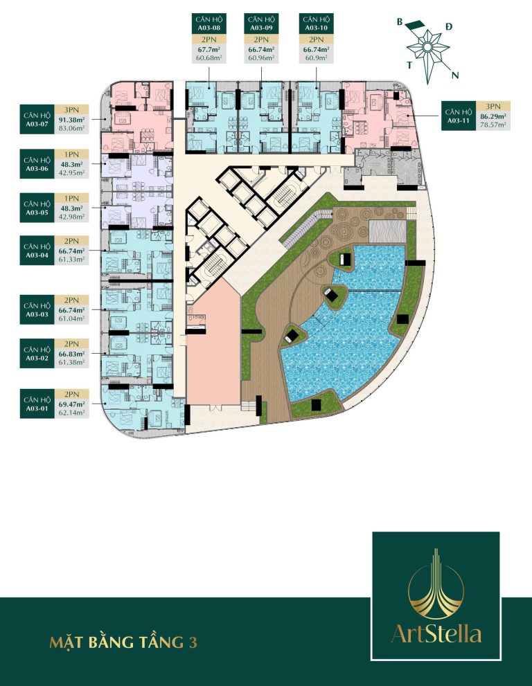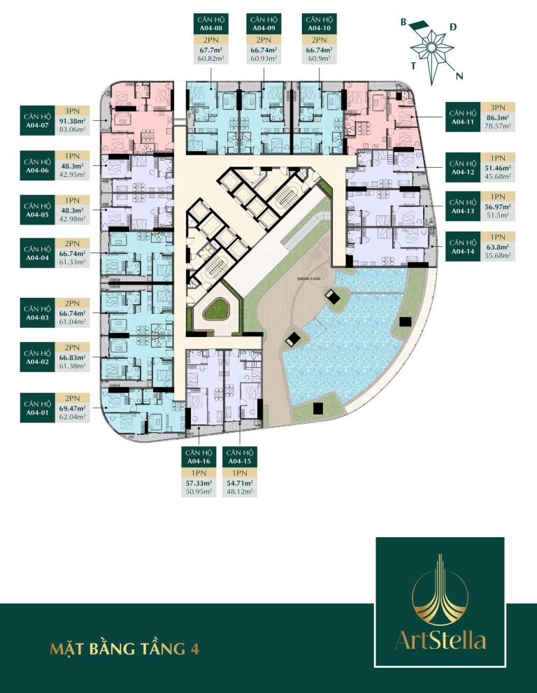 Mặt bằng quy hoạch của Art Stella Dĩ A được thiết kế khoa học, tối ưu hóa không gian sử dụng mà không có góc chết, đảm bảo mọi căn hộ đều đón được gió và ánh sáng tự nhiên. Tổng thể dự án gồm 2 tòa tháp cao 36 tầng, bố trí hài hòa với cảnh quan đa lớp, hòa quyện giữa kiến trúc hiện đại và thiên nhiên.