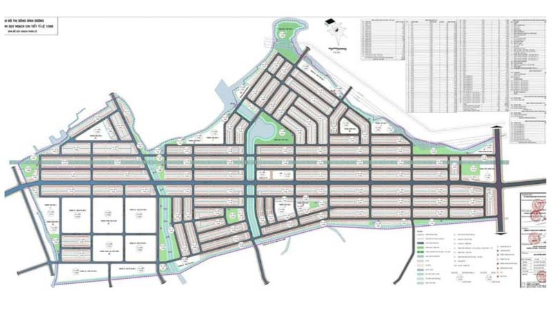 Ngoài ra, Quyết định số 393/QĐ-UBND ngày 15 tháng 2 năm 2024 của UBND tỉnh Bình Dương phê duyệt kế hoạch sử dụng đất năm 2024 cho TP. Dĩ An, chuyển mục đích sử dụng 125,2 ha đất ở đô thị (ODT) trên tổng 126,7 ha. Bản đồ quy hoạch tỷ lệ 1/500 được TP. Dĩ An ký ngày 25/9/2018, xác định tổng diện tích và phân lô hơn 6.000 nền. Đến năm 2024, tiến độ hạ tầng đã hoàn thiện đáng kể: các trục đường thảm nhựa và trồng cây xanh, hệ thống điện nước cáp quang ngầm hóa xong, đèn chiếu sáng lắp đặt đến giữa giai đoạn 1.