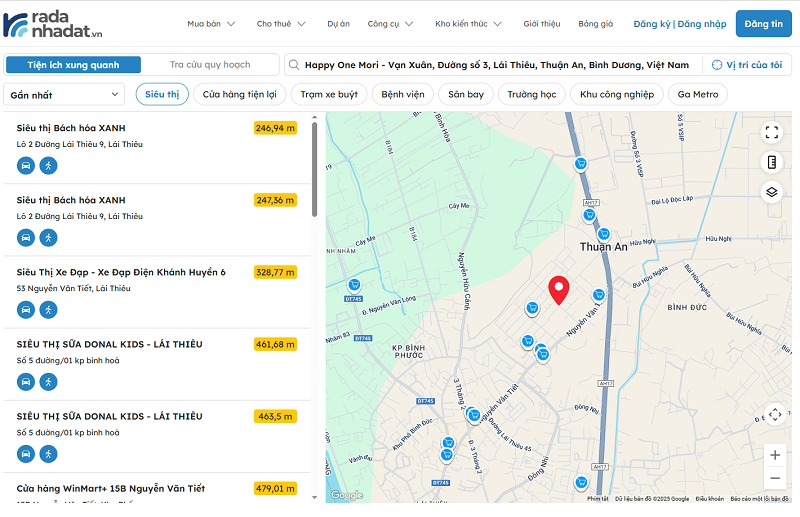 Để đưa ra quyết định chính xác và an tâm khi chọn nơi an cư, công cụ Khám phá khu vực của Radanhadat.vn sẽ là trợ thủ đắc lực. Chỉ cần nhập vị trí của bạn, hệ thống sẽ ngay lập tức hiển thị khoảng cách đến siêu thị, bệnh viện, trường học và các tiện ích quan trọng khác xung quanh, giúp bạn dễ dàng đánh giá và lựa chọn nơi sống phù hợp nhu cầu.