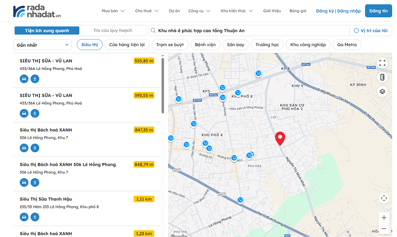Để đưa ra quyết định chính xác và an tâm khi chọn nơi an cư, công cụ Khám phá khu vực của Radanhadat.vn sẽ là trợ thủ đắc lực. Chỉ cần nhập vị trí của bạn, hệ thống sẽ ngay lập tức hiển thị khoảng cách đến siêu thị, bệnh viện, trường học và các tiện ích quan trọng khác xung quanh, giúp bạn dễ dàng đánh giá và lựa chọn nơi sống phù hợp nhu cầu.