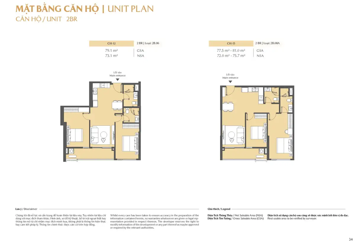 - Căn 2PN (76-81 m²) và 2PN+ (76,8 m²) dành cho gia đình nhỏ, bố trí 2 phòng ngủ riêng biệt, khu vực làm việc đa năng và 2 ban công đón gió sông.