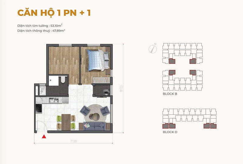 Căn hộ 1 phòng ngủ: