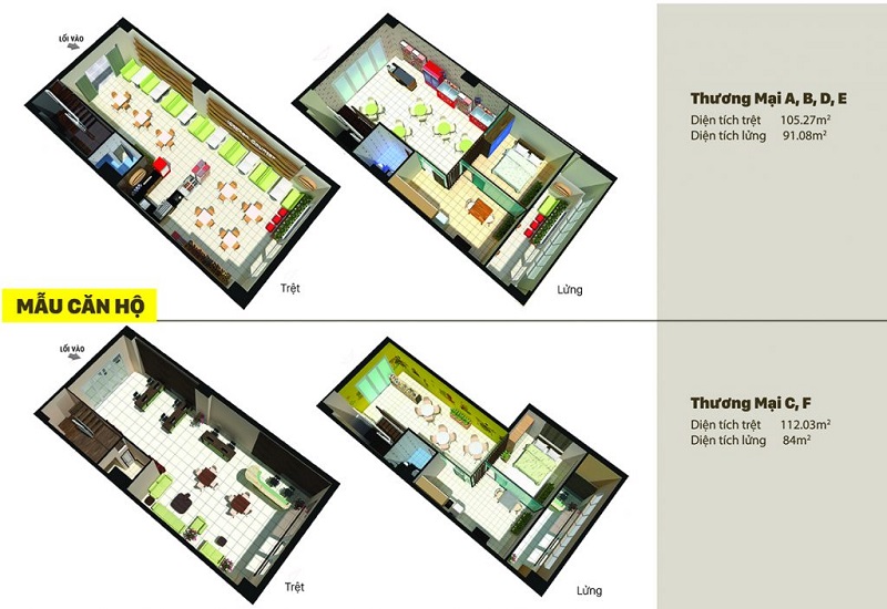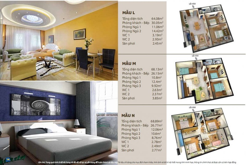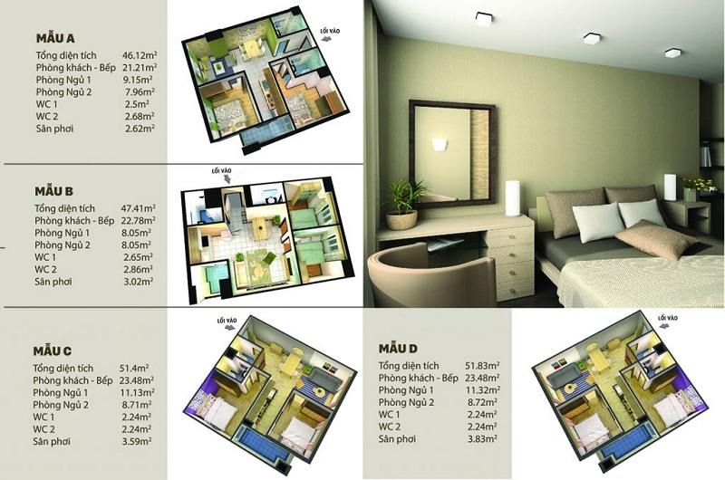 | Diện tích | Từ 46 m² đến 69 m², thiết kế 2 – 3 phòng ngủ |