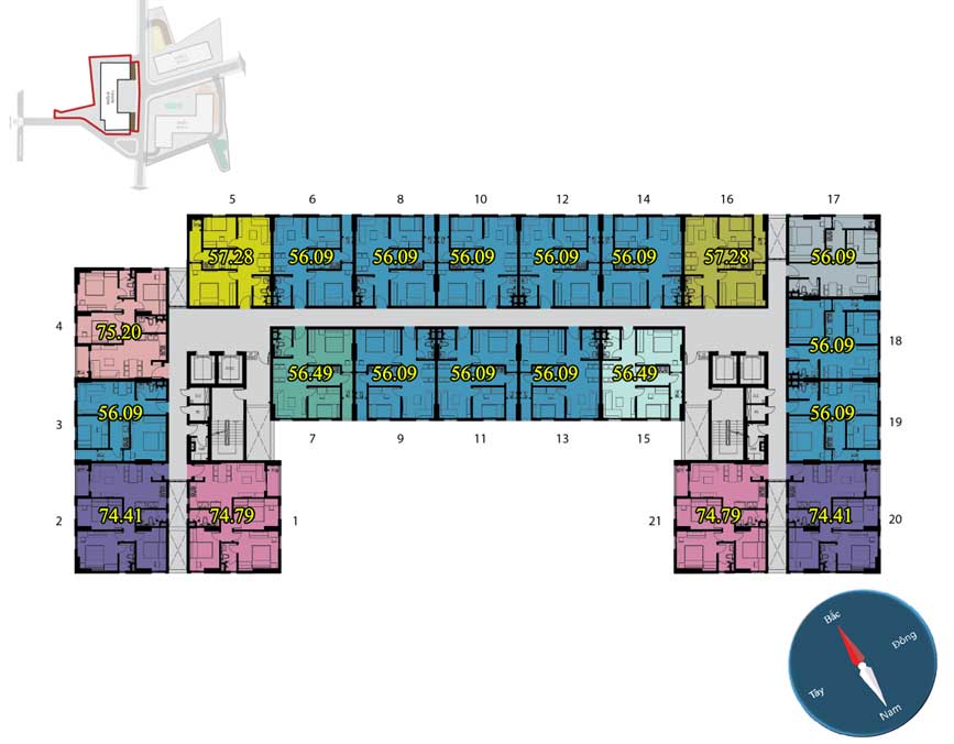 Quy mô | 3 Block, 20 tầng/block, 1 tầng hầm |