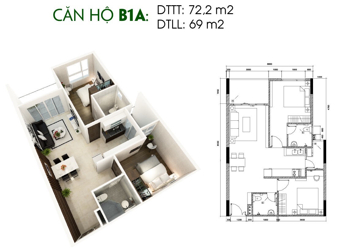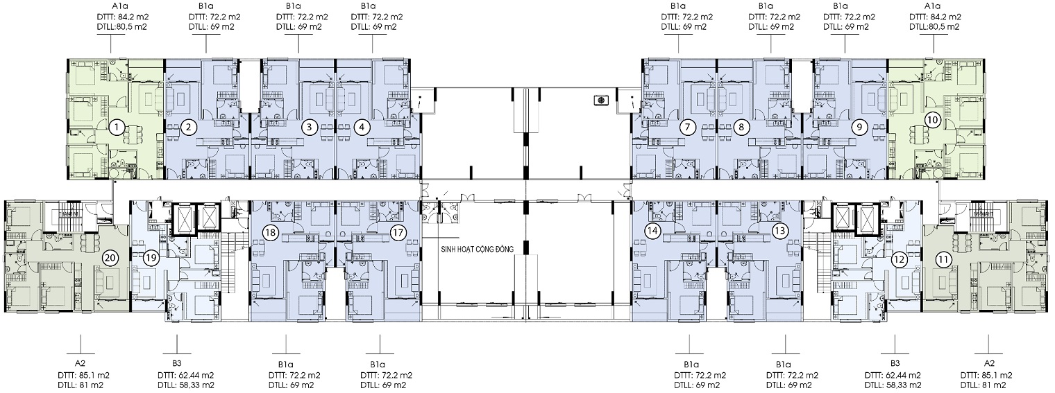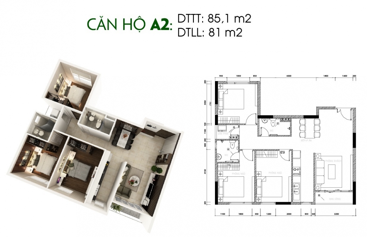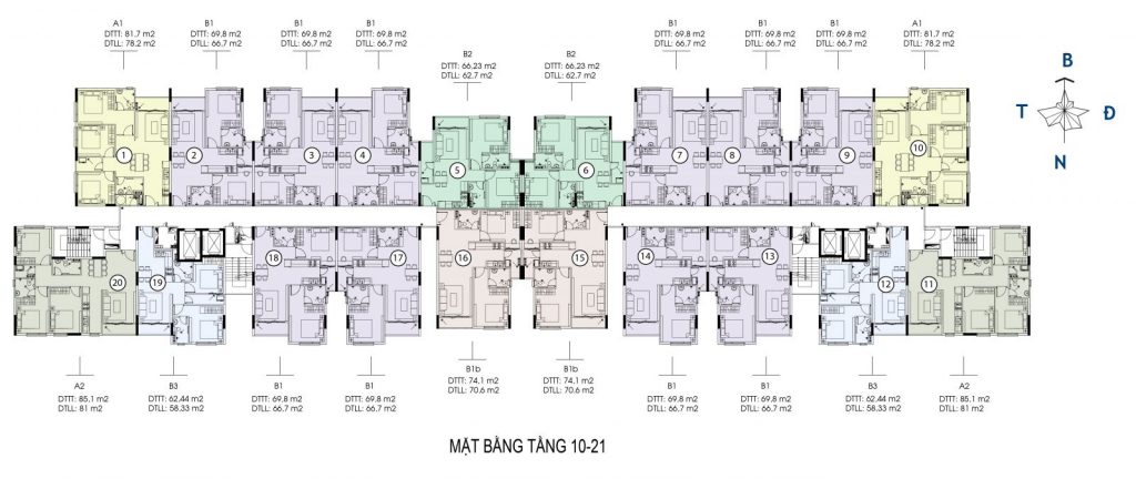 | Diện tích căn hộ | 62,44 – 85,1 m² |