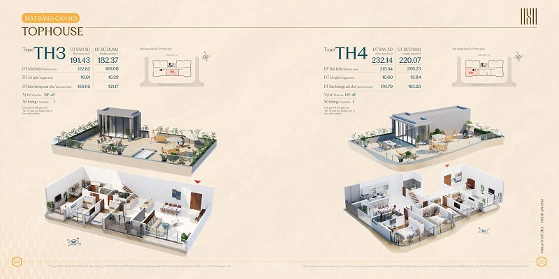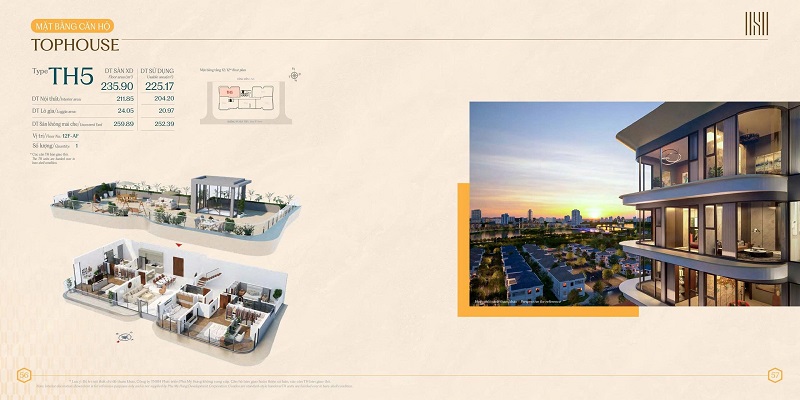 | Penthouse – 5 căn | 191 – 236m² + sân vườn riêng | Từ 180 – 190 triệu/m² |