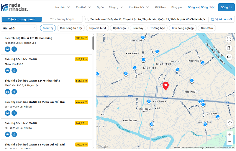 Ví dụ: Nhập “Zenta Home 16 Quận 12“, bạn đã có thể kiểm tra chính xác: