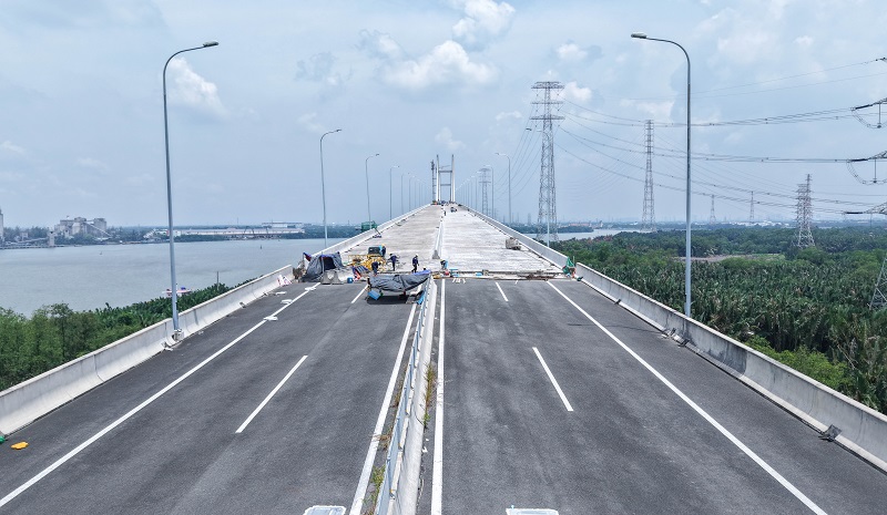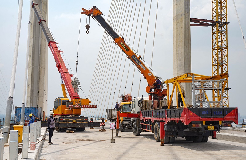 Hiện tại, các hạng mục cuối cùng như lắp đặt dải phân cách, thảm nhựa mặt cầu, lắp khe co giãn, hệ thống chiếu sáng và biển báo an toàn đang dần hoàn thiện. Tất cả đều được thực hiện theo tiêu chuẩn kỹ thuật khắt khe, vừa đảm bảo chất lượng công trình, vừa đáp ứng tính thẩm mỹ của một cây cầu hiện đại mang tầm vóc quốc gia.