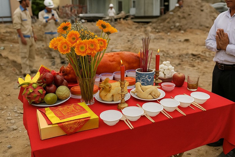 Nnghi thức động thổ cũng là một trong những việc cần được chuẩn bị chu đáo. Gia chủ nên sắm lễ vật đầy đủ, thành tâm khấn vái thần linh, thổ địa và tổ tiên để xin phép khởi công. Sự chuẩn bị kỹ lưỡng và thành tâm không chỉ giúp lễ động thổ diễn ra suôn sẻ mà còn tạo nguồn năng lượng tích cực lan tỏa cho toàn bộ công trình.